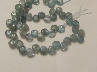 This is a very very nice strand of Faceted Natural SEA GREEN WITH A SILVERY SHEEN Apatite FLAT HEART BRIOLETTE 16" bead strand. This strand is all natural and is faceted and weighs 125 cts each . FOUR are available. The strands change variations of sea GREEN TO A SILVER GREENISH BLUE as you move through the light. This is an unusual and definitely has "Gawk" appeal and stunning. Thank you for allowing me to share my love of gemstones with you.