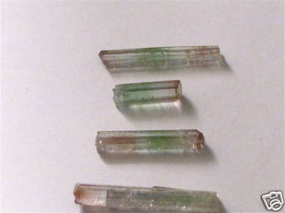 BEAUTIFUL AFGHAN TRI-COLOR PINK/GREEN AND COLORLESS TRANSPARENT ELBAITE TOURMALINE GEMS. I HAVE MATCHED UP 3 LOTS IN PAIRS OR GROUPS TO MATCH ONE ANOTHER FOR JEWELRY. THESE ARE VERY SPECIAL AND VERY TOUGH TO FIND GEMS. I BELIEVE THESE DO NOT COME AROUND TOO OFTEN ESPECIALLY AT THIS QUALITY AND WITH CLOSE MATCHING GROUPS. THIS LOT CONSISTS OF 4 PIECES WHICH THE GEM WEIGHTS ARE AS FOLLOWS: ONE 8.33CT GEM, ONE 6.00. CT GEM, ONE 5.27 CT GEM AND ONE 5.20 CARAT GEM. THIS IS AN UNBELIEVABLE PARCEL BECAUSE OF THE COLOR, CLARITY AND 1 IS VVS ,2 ARE VS AND ONE IS 1/2 VS AND THE OTHER HALF SI1. THIS WON'T LAST. THIS ARE MOSTLY 90 % FACET ROUGH LOTS WITH SOME MINOR INCLUSIONS ON THE PERIMETER OF THE LARGE PIECE MOSTLY. I HAVE PURCHASED TOO MUCH AND ARE LIQUIDATING TONS OF ROUGH FROM KUNAR MINES IN AFGHANISTAN. IF YOU DON'T SEE WHAT YOU WANT, I HAVE JUST ABOUT EVERY COLOR AND EVERY FACET GRADE SO JUST EMAIL ME. THIS TYPE OF AFGHAN FACET ROUGH IS BECOMING VERY SCARCE AND IS VERY TOUGH TO FIND OR TOO EXPENSIVE FOR MOST . THERE ARE 3 LOTS FOR SALE INDIVIDUALLY. AUCTION IS STARTING AT LESS THAN $7.00/CT AND $150.00/ PARCEL WHICH IS EXTREMELY CHEAP .BUY IT NOW PRICE IS $200.00 WHICH IS EXTREMELY REASONABLE AT LESS THAN $9.00/CARAT. THESE STONES ARE USUALLY UPWARDS OF AT LEAST $25.00 A CARAT IF YOU CAN EVEN FIND THESE BIG STONES IN A PARCEL THIS SMALL. THESE GEMS ARE CURRENTLY ON EBAY FOR $65/CT .