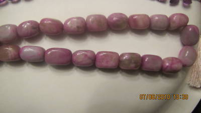 This is a very RARE AND REALLY BEAUTIFUL STRAND OF PURPLE LAPIS LAZULI WITH PINK AND MAGENTA HUES IN A VERY ATTRACTIVE NUGGET SHAPED 16" strand. THESE ARE LARGE BEADS APPROXIMATELY 18MM BY 14MM AND NOT GRADUATED. THIS STRAND WEIGHS 350 CT AND HAS A DEFINITE BOLD LOOK.This is an unusual and definitely has "Gawk" appeal and stunning. Thank you for allowing me to share my love of gemstones with you.