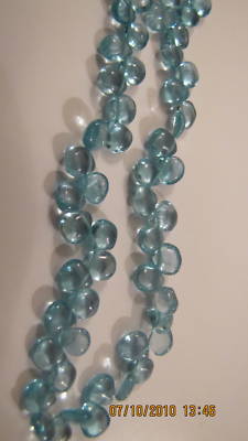 This is a very very nice strand of Natural Neon Caribbean blue or Paraiba Blue Apatite SMOOTH BRIOLETTE Shaped 9" bead strand. This highly polished strand is all natural and is and weighs 60 cts. Only 1 available. The strands change variations of sea blue to turquoise color as you move through the light. This is an unusual and definitely has "Gawk" appeal and stunning. Thank you for allowing me to share my love of gemstones with you.