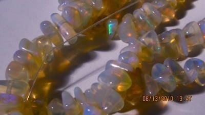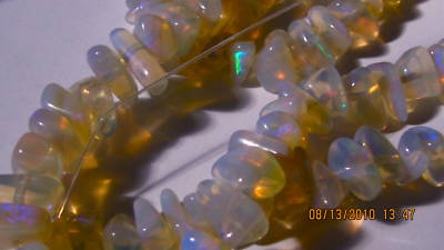 Visit My eBay Store: Gawk at my Gems THIS IS ONE OF THE MOST BEAUTIFUL BAROQUE CRYSTAL OPAL STRANDS THAT I HAVE EVER SOLD. THESE BEADS ARE ALL NATURAL AND NOT ENHANCED IN ANYWAY. THIS OPAL COMES FROM COOBER PEDY AUSTRALIA AND ARE BEAUTIFULLY CUT AND POLISHED. THESE ARE A TRUE OPAL LOVER'S DREAM. THE OPAL FLASHES MANY COLORS SUCH AS BLUE, PURPLE, GREEN, ORANGE, AND RED. THIS IS A BRIGHT CRYSTAL STRAND WHICH WILL MAKE SOMEONE VERY HAPPY.