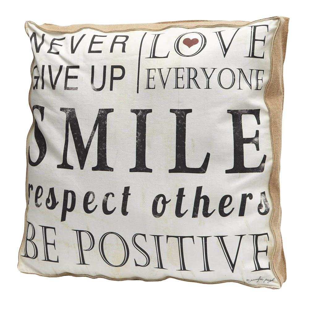 The Positive Affirmations Pillow is part of our Word Play collection. Designed to inspire and empower, this pillow makes a wonderful housewarming or holiday gift as it declares, "Never Give Up," "Smile," "Be Positive," and more. Why not add some inspiration to your home dcor?- Black and White