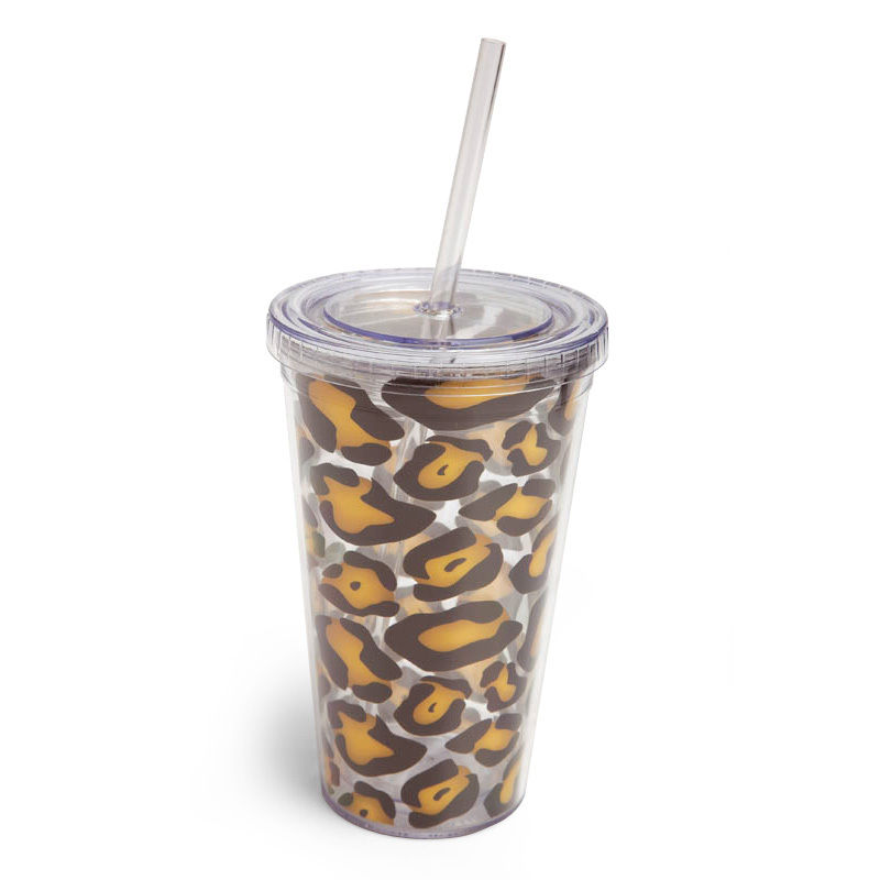 Leopard Insulated Cup With Straw