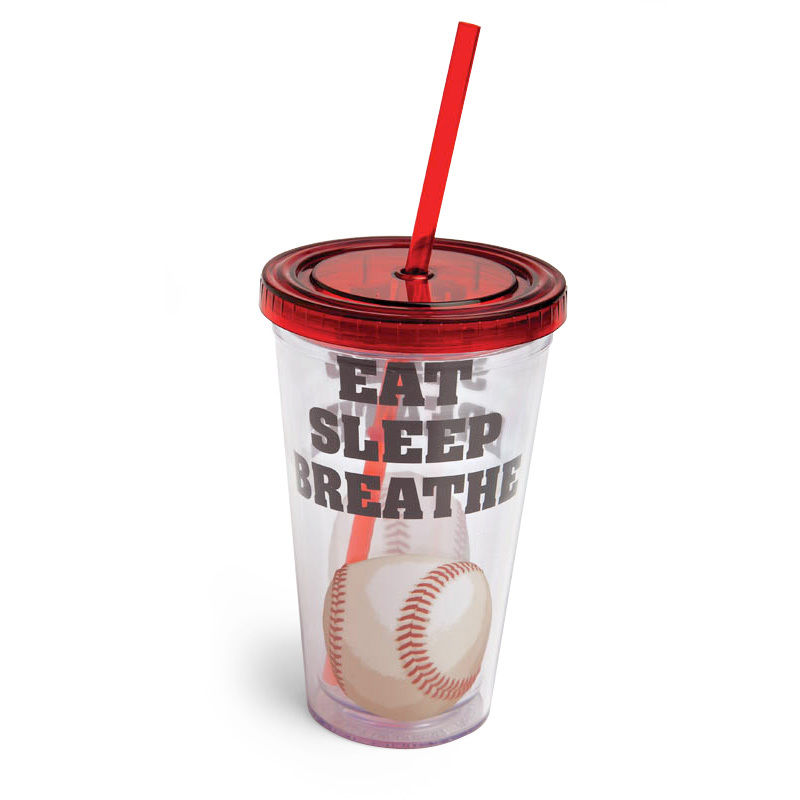 Who said cups with lids had to be boring? With a baseball front and center, this cup shows off true passion for the game, as it declares "Eat, Sleep, Breathe Baseball." Whether used for a party or adding color to the everyday, the Live Baseball Insulated Cup with Straw is perfect for kids, teenagers, and fun-loving adults.- 4"L x 4" W x 6.25"H