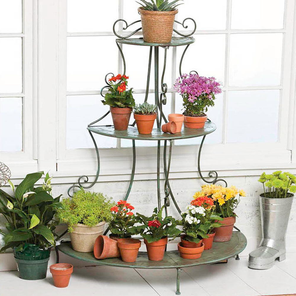 This three tier plant shelf is the perfect accent to showcase your green thumb and the blooms of the season. In antique verdi green and with swirling metal accents between shelves, it looks inspired by Mother Nature. Whether combined with our other antique verdi pieces or by itself, this plant shelf is a stunning outdoor accessory.- 3-Tiers