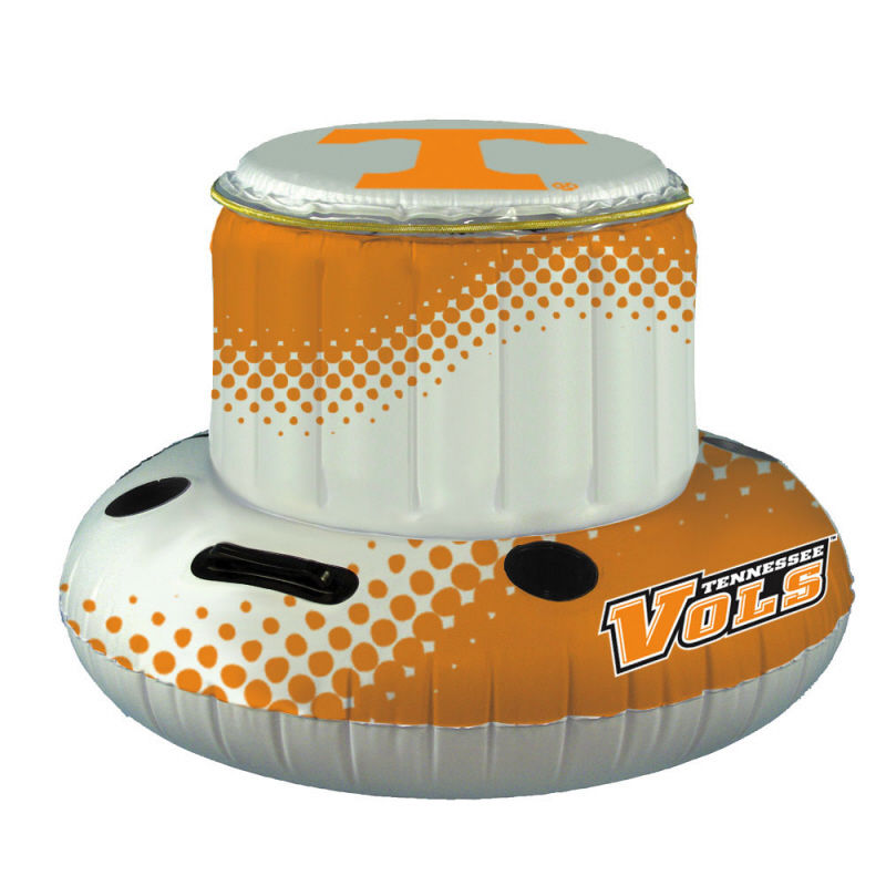 Take the party and your favorite team into the pool with this University Of Tennessee floating cooler. A great way to carry your favorite beverages and snacks as you float in the pool, lake or river. Insulated with a zipper top, this inflatable cooler will keep your items cold for hours! Holds up to 32 quarts of your favorite items and contains 4 cup holders, keeping your beverages right at hand. Easy grip handle allows you to tote this with ease.- Approximate dimensions are 30 inches in diameter and 20.5 inches tall