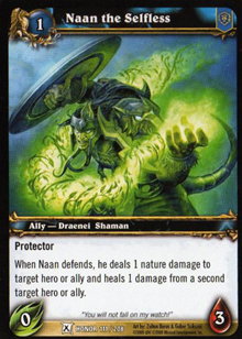 When Naan defends, he deals 1 nature damage to target hero or ally and heals 1 damage from a second target hero or ally.