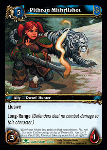 Alliance: Elusive Long-Range (Defenders deal no combat damage to this character.)