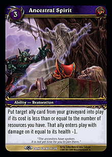 Put target ally card from your graveyard into play if its cost is less than or equal to the number of resources you have. That ally enters play with damage on it equal to its health -1.