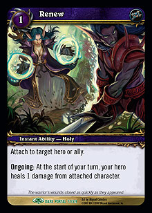 Ongoing: At the start of your turn, your hero heals 1 damage from attached character.