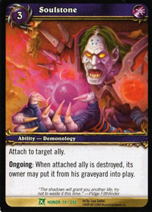 Attach to target ally. Ongoing: When attached ally is destroyed, its owner may put it from his graveyard into play