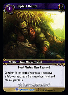 Ongoing: At the start of your turn, if you have a Pet, your hero heals 2 damage from itself and each of your Pets.
