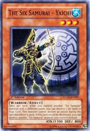| Unlimited Once per turn, while you control another "Six Samurai" monster with a different name, you can destroy 1 Set Spell or Trap Card. This monster cannot declare an attack during the turn this effect is used. If this card would be destroyed, you can destroy another "Six Samurai" monster you control instead. |