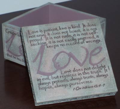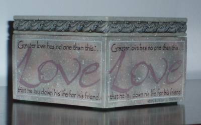 One of my personal favorites, this listing is for the Corinthians Love Keepsake Trinket Box. This is a 2004 By Faith creation done by Bill Stross for DEMDACO. * Look at that awesome scroll work! *