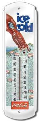 COKE - Ice Cold Coca-Cola Soda TIN METAL THERMOMETER