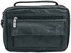 Genuine Black Leather LG Bible Cover Case Ikhthus Cross Pull Pen Holder Pocket