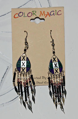 Hand Painted Shield with Dangle Beads on Surgical Steel Wires
