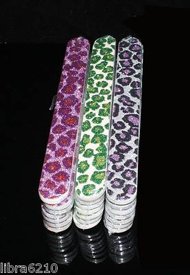 Wholesale lot 21 Multi-Color Leopard Print Sparkle Glitter Nail Files File NEW