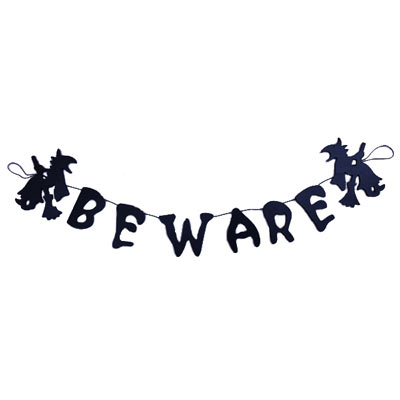This bewitching decoration is great indoors or out! - Wooden black laquered letters - Connected by coated craft wire - Reads inBewarein with two witch sihouettes - Measures 24in W x 5inH - Suitable for indoor or outdoor use