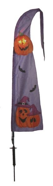 This LED solar powered Halloween flag lights up to add spookiness to your lawn!