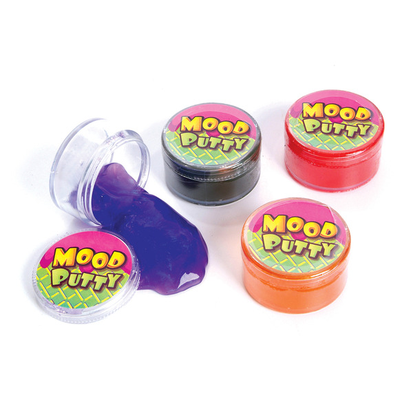 This mysterious putty is known to change colors depending on personal touch and mood. Assortment of colors may vary. One dozen per display. Case Pack 36