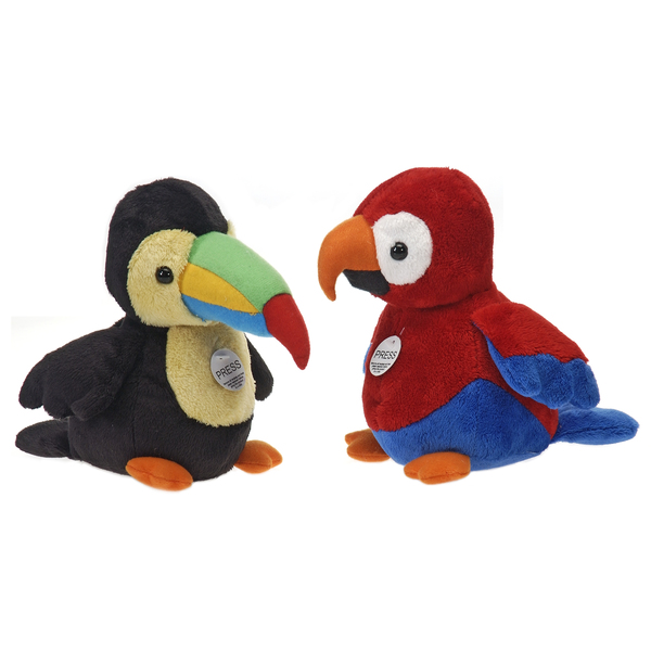 7"" 2 Assorted Plush Birds With Sound -Parrot,Toucan." Case Pack 24