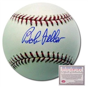 Bob Feller played for the Cleveland Indians, his only team, for 18 years, being one of "The Big Four" Indians pitching rotation in the 1950s, along with Bob Lemon, Early Wynn and Mike Garcia. He ended his career with 266 victories and 2,581 strikeouts, and led the American League in strikeouts seven times. He pitched three no-hit games and shares the major league record with 12 one-hitters. Feller was the first pitcher to win 20 or more games before the age of 21. He was elected to the Baseball Hall of Fame in 1962. This Product Includes: Authentic Autographed Item, Certificate of Authenticity, Tamper Resistent Holograms or Labels, Personal Player/Agent Hologram (when available).