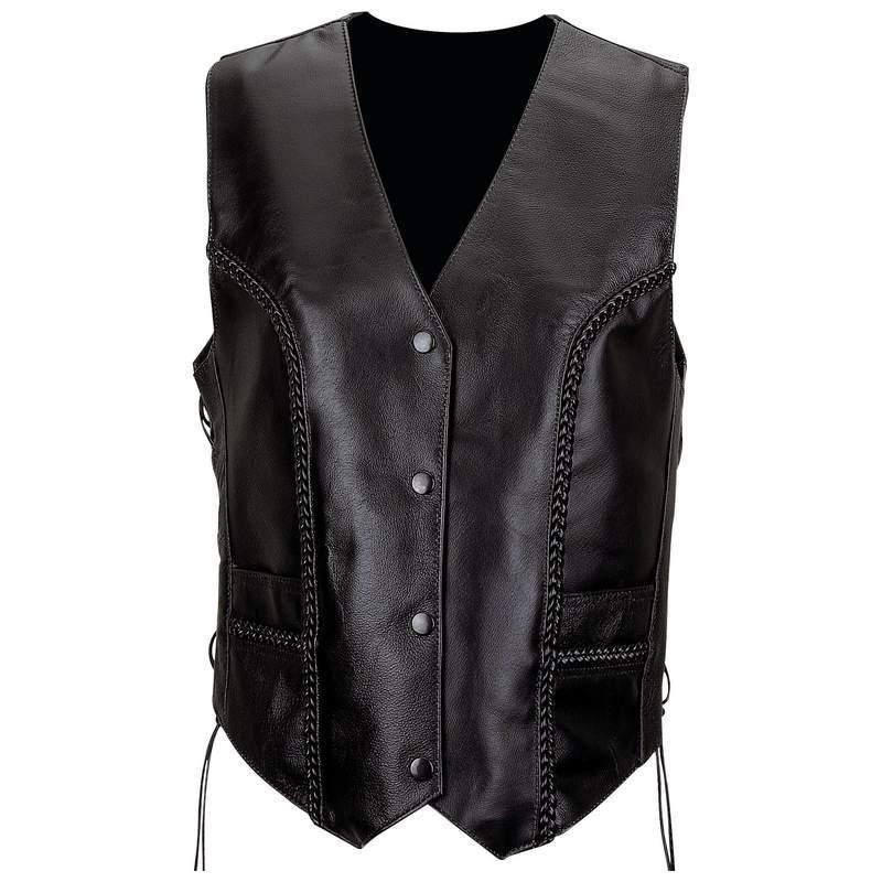 Diamond Plate™ Solid Genuine Leather Vest Features black finished brass snaps, laced sides, two front pockets, two