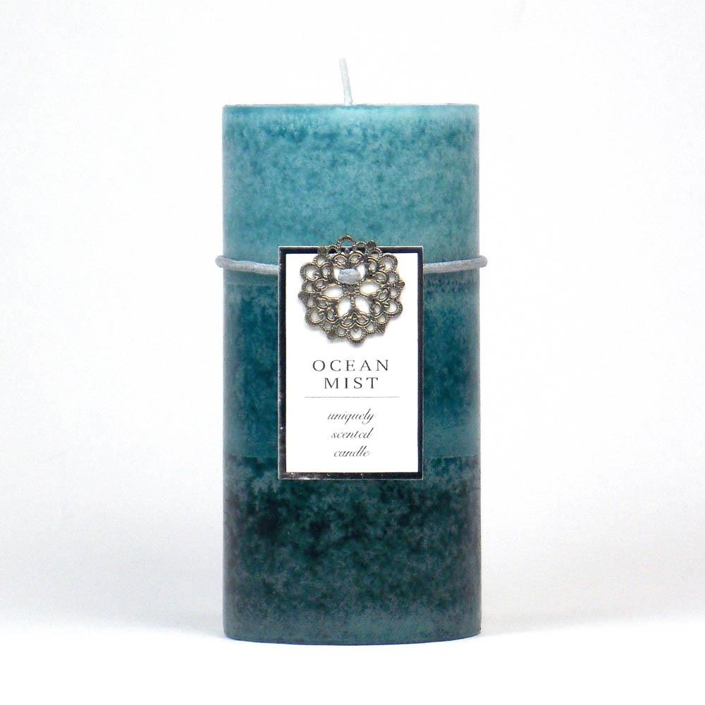 Ocean Mist scented candle opens with transparent green aquatic notes enhanced by ozone accord and crisp melon essence. It flows into a floral heart of soft rose petals, jasmine blossom, lavender, kiwi and plum; and is harmonized with violet leaves. Lead and tin free cotton wick. Burn Time: 60 Hours. Tri-color Paraffin wax and metal charm.3'' x 3'' x 6'' high NEW IN BOX OR PACKAGING Manufacturer DEFECT FREE Guarantee!