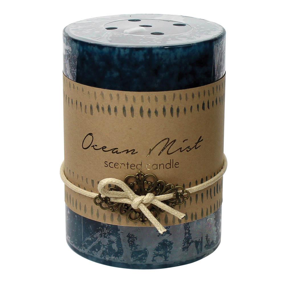 With this ocean side pillar candle you'll get the scent of green aquatic accords enhanced by ozone accord and crisp melon essence. Harmonized with fruity orange and notes of kiwi and plum. Burn time: up to 60 hours. Paraffin wax.