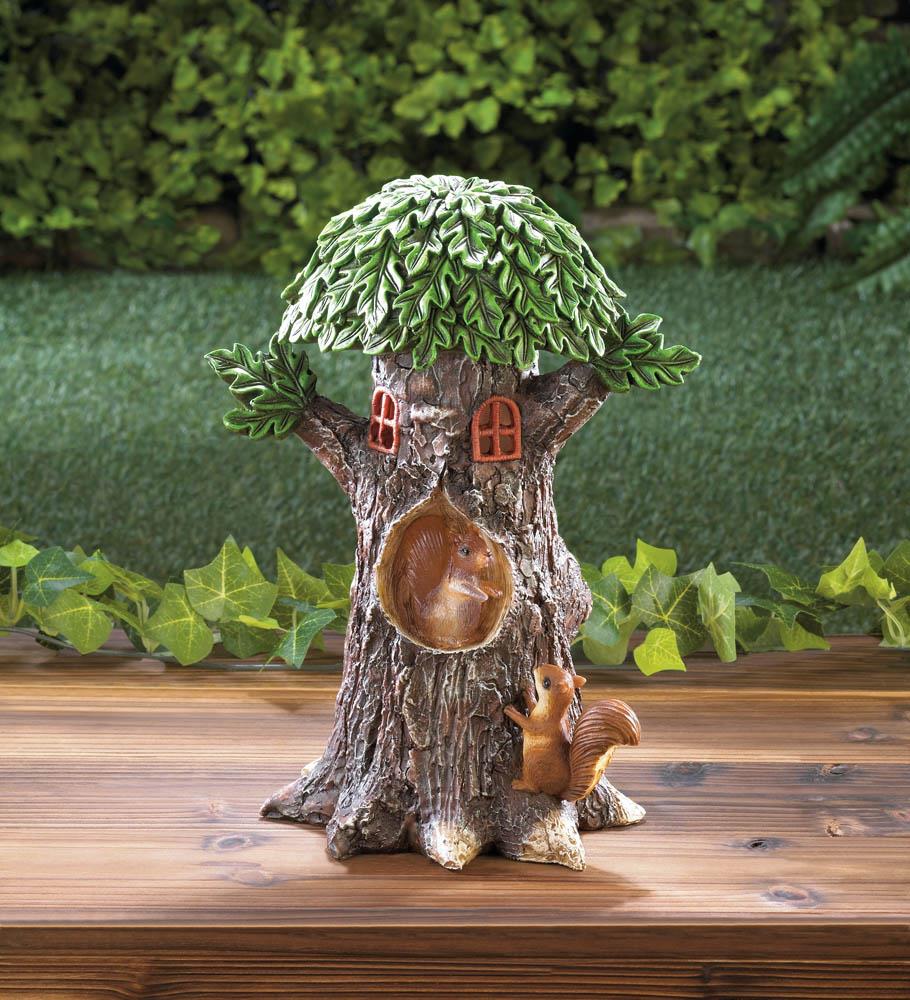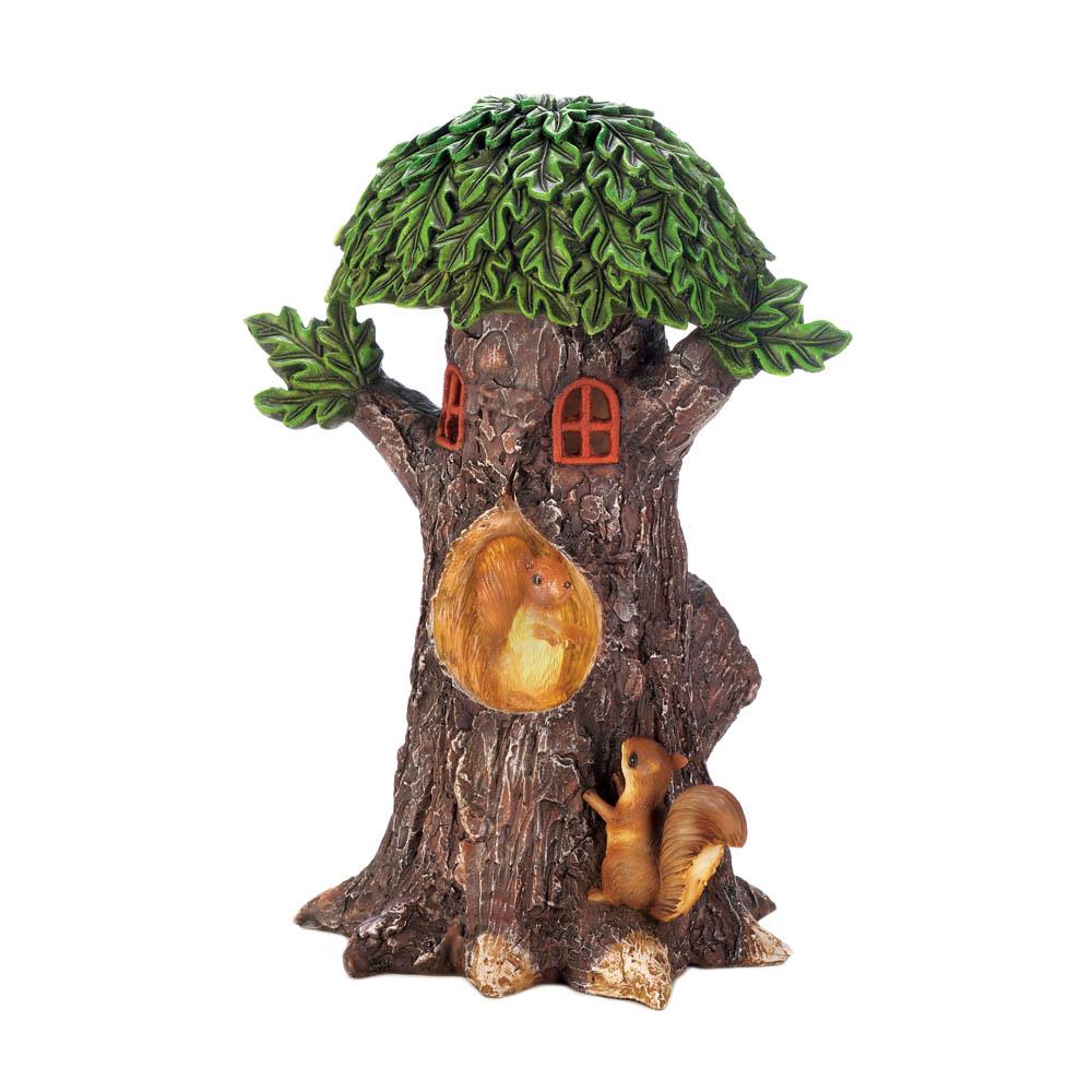 Adding a tree house to your yard is easy with this charming outdoor accent! Two little squirrels have made themselves a cute little tree house that you can place in your yard. With the power of the sun by day, the little squirrel lights up at night! Polyresin and solar light.