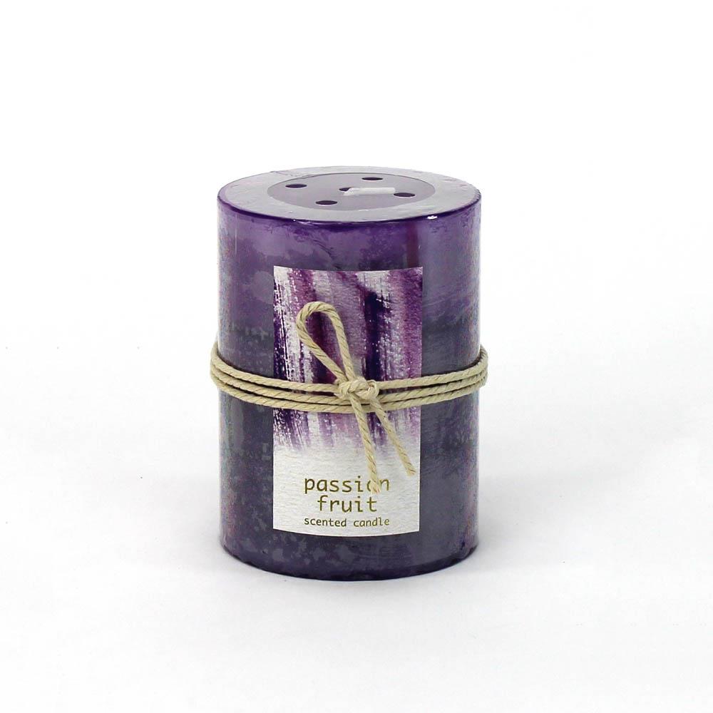 :10674V - Passion Fruit Scented Purple Tri-color Paraffin Wax 3X4 Pillar Candle