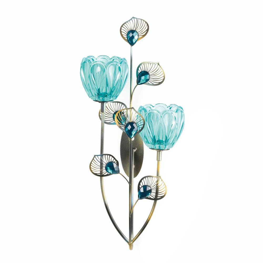 *18049V - Peacock Blossom Double Turquiose Swirl Cup Wall Sconce