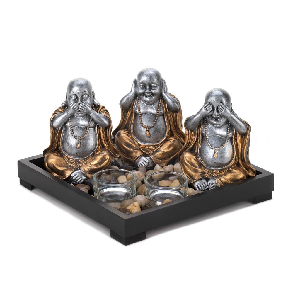 *16195V - Speak Hear See No Evil Buddha Tea Light Candle Garden