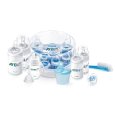 Bottle brush, formula dispenser, pacifier, trainer cup, express microwave sterilizer