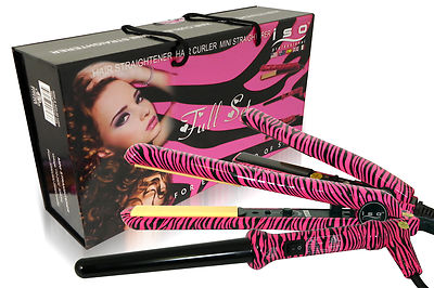 Iso Beauty FULL SET curling iron 1.5 inch flat iron and Mini 0.5 - Pink Zebra