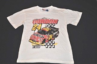 The short sleeve, light weight shirt has a picture of Jeff Gordon, his autograph, the number 24, and the Chevy Impala with Dupont Logo.