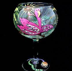 Flamingo Frolic Design - Hand Painted - Goblet - 12.5 oz.