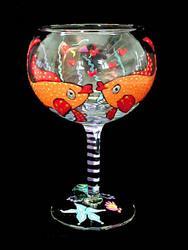 Flirty Fish Design - Hand Painted - Goblet - 12.5 oz.