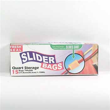 Fresh Seal Quart Slider Bags are perfect for storage in the refrigerator and freezer. Slider keeps fresh safe and fresh. Easy grip design on the slider seals in freshness. 15 bags per box. Case Pack 24