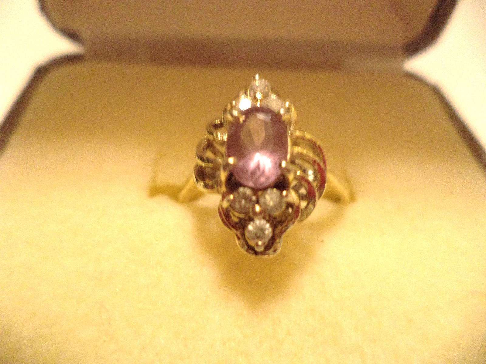 Vtg 80s Amethyst Oval Cut Solitaire w/cz Vtg 80s Amethyst Oval Cut Solitaire w/cz7 Stone 925 Ring VGC S7 1.65 g dwt7 Stone 925 Ring VGC S7 1.65 g dwt
