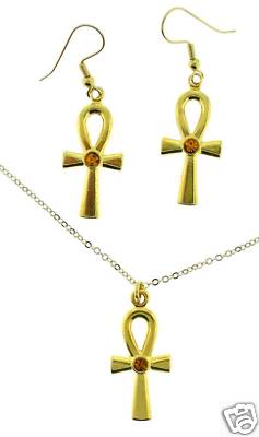 Our set of earrings and pendant are in goldtone with birthstone Swarovski crystal details.