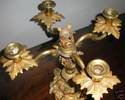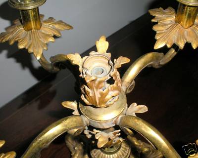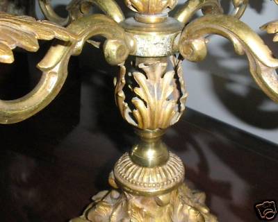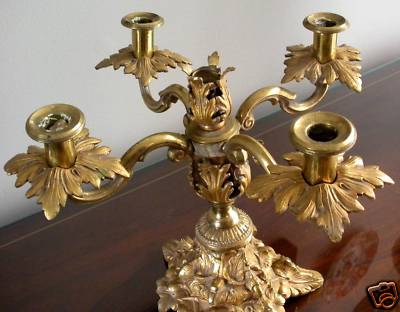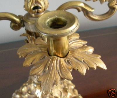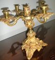 The item is a four armed, five candle holding candelabra in gilded Bronze. The center looks like it may have once held a light bulb. I do not know for sure, but the center piece has an opening down to the base and can be converted to be a light fixture. The four arms are removeable for shipping, as are the actual cups that hold the candles. This item is very heavy and weights over 5 lbs.