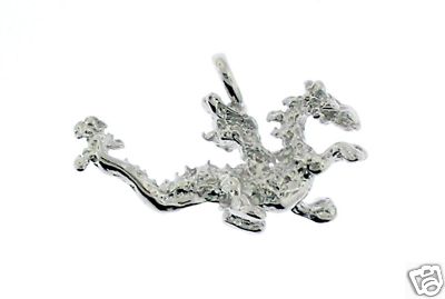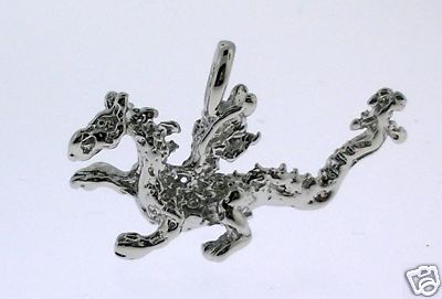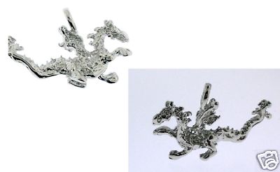 A 3/D dragon charm with all of the details. Standing on all fours, tail raised and ready to go! Bail on top holds chain.