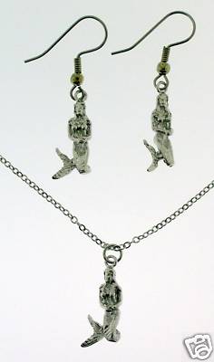 This is an earring and pendant set featuring 3/D Mermaids with all of the details.