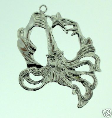 A large wizard charm with all of the details. Hands raised holding a magical star above his wizards hat, beard flowing.