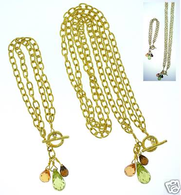 Boutique quality necklace and bracelet set in goldtone with briolette CZ's dangling.