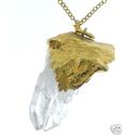 This is a quartz crystal pendant which is capped with a goldtone metal and and bail for hanging on a chain.