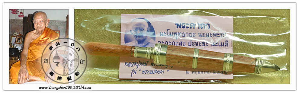 LP Hong - 5" Mit Mor (Wood - Light Brown) - Wat Phetburi - 2551 Limited edition, made 100pcs. Material : Holy wood, mixed metal and yants. (Size L-12.6cm x W-1.8cm)