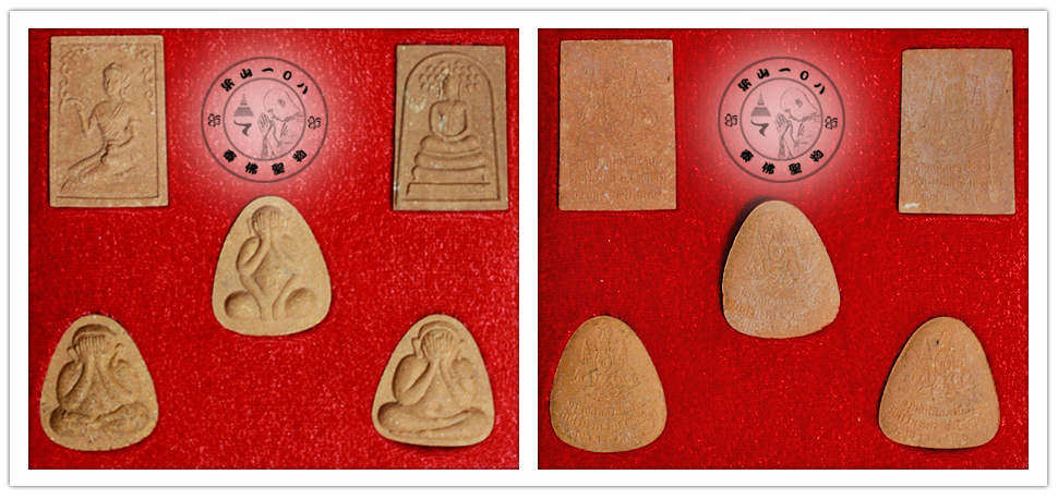 Phra Pidta Set - (Mass Chanted) - Wat Phra Kaew - 2539 (Limited edition set of 3 Pidta, 1 Nang Kwak and 1 Somdej in in original temple box.) Size of temple box - H-10cm x W-11cm x D-2.6cm Size of amulet : H-3.5cm x W-2.3cm x D-0.6cm Material : Holy powder with temple stamp behind.